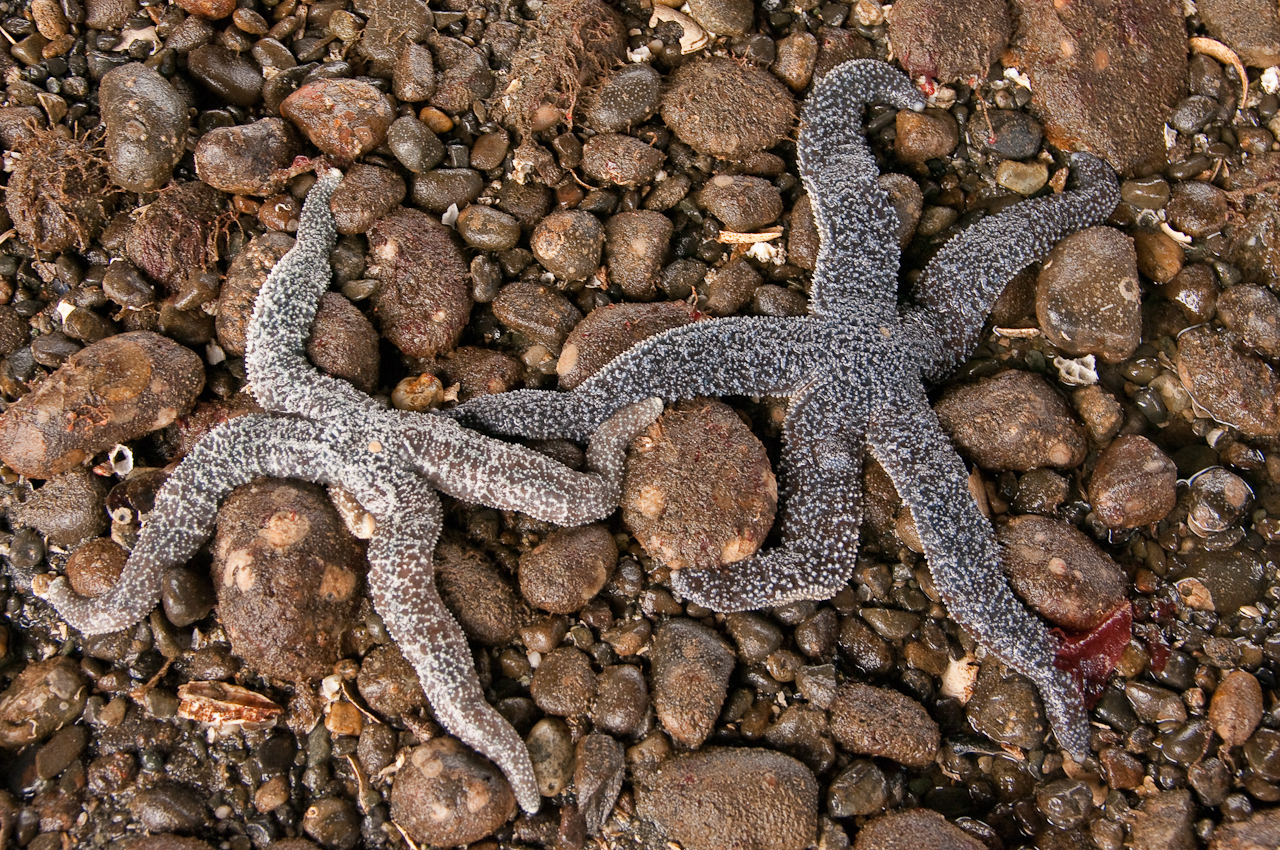 The pictures of starfish and the tide pool gazers, Jennifer and friends Sally Anderson and James Kelsey, were taken during an extreme low tide around the Washington State Ferry dock in Southworth, WA. This dock is also our usual route to Seattle.