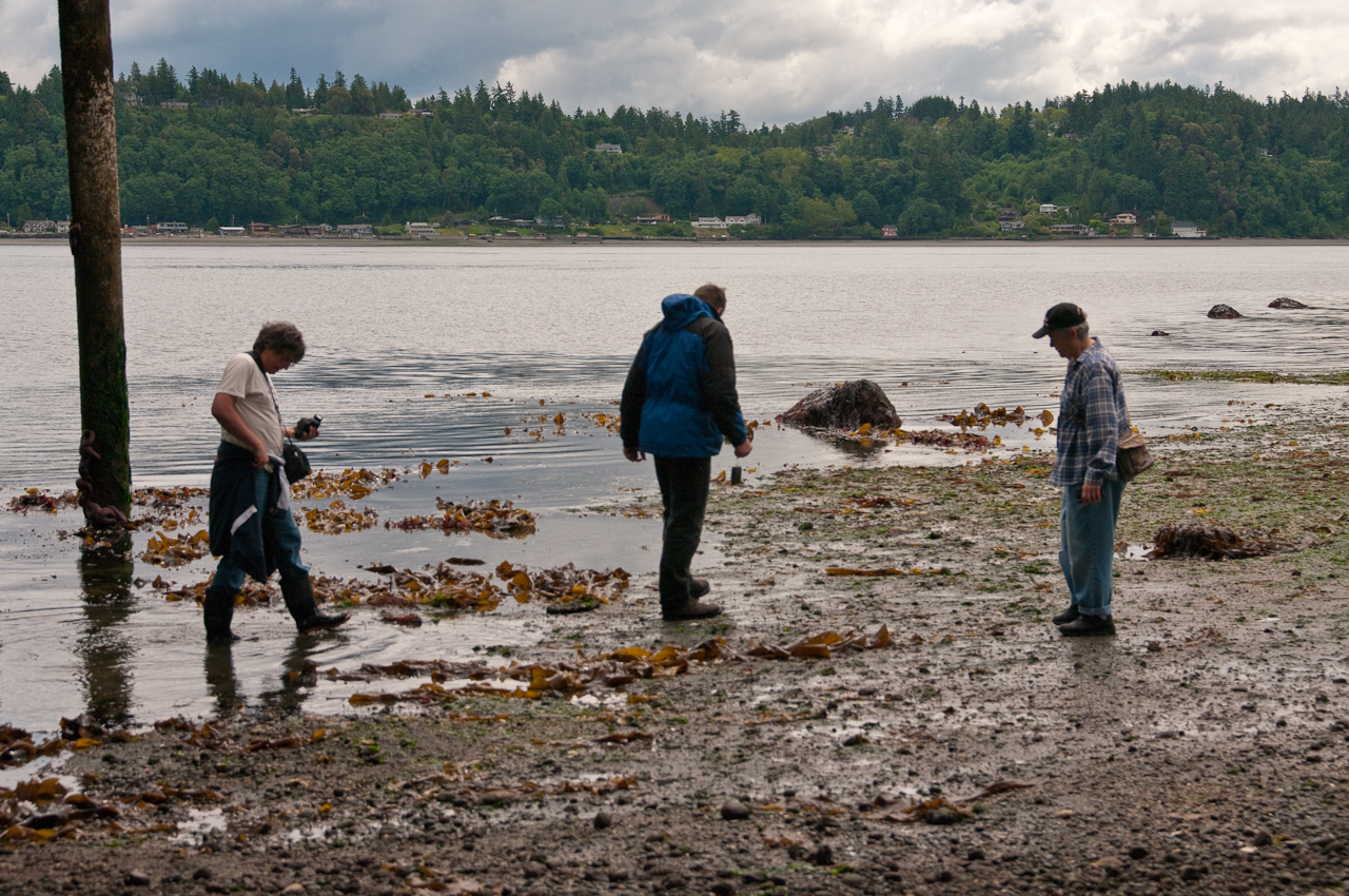 Sally, James Kelsey and Jennifer examining the life exposed by an extreme low tide in Southworth WA–June 15, 2011.